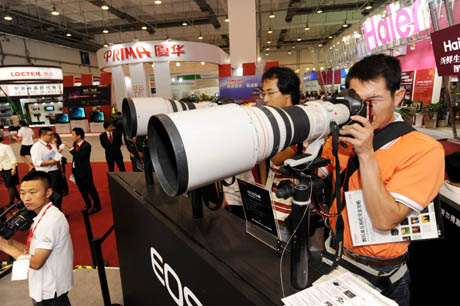 在日前舉行的2009中國(guó)國(guó)際消費(fèi)電子博覽會(huì)(SINOCES)上,觀眾正在體驗(yàn)專業(yè)數(shù)碼相機(jī)。本組照片均由新華社記者 李紫恒