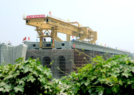 中鐵四局四公司承擔(dān)施工的滬寧城際鐵路仙林特大橋正在架梁施工。滬寧城際鐵路是2010年上海世博會的配套工程,全線長約300公里,2010年7月1日前開通運(yùn)行。
