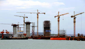 福建平潭海峽大橋加緊建設