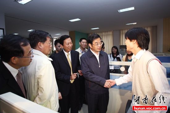 10月12日下午,湖南省委副書記、省長周強(qiáng),湖南省委常委、宣傳部部長路建平一行來到湖南日報(bào)報(bào)業(yè)集團(tuán)就文化產(chǎn)業(yè)發(fā)展進(jìn)行專題調(diào)研,并專程來到華聲在線了解湖南日報(bào)新媒體的發(fā)展情況。