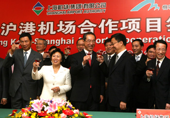 10月12日,上海機場(集團)有限公司與香港機場管理局在上海舉行滬港機場合作項目簽約儀式,雙方合資成立上海滬港機場管理有限公司,管理上海機場集團所屬的虹橋機場的東、西兩個航站樓、虹橋綜合交通樞紐東交通中心與旅客流程相關(guān)區(qū)域,以及航站樓商業(yè)零售業(yè)務(wù)。