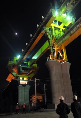 滬杭高鐵鋪架順利跨越運行鐵路線,進入無障礙施工階段。新華社記者