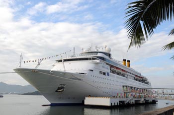 2009中國郵輪產(chǎn)業(yè)發(fā)展大會暨首屆國際郵輪博覽會11月在三亞舉辦。圖為?吭谌齺嗻P凰島國際郵輪碼頭的歌詩達(dá)“經(jīng)典號”郵輪。新華社記者 鄭瑋娜