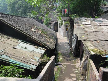 上圖為建成的居民小區(qū)一角。 下圖為從前的棚戶區(qū)一角。