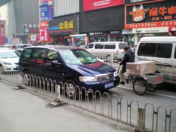擁擠的中關(guān)村占道停車。記者 邢梅