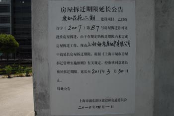 該項目的房屋拆遷期限延長公告。記者 李新民 攝 |
