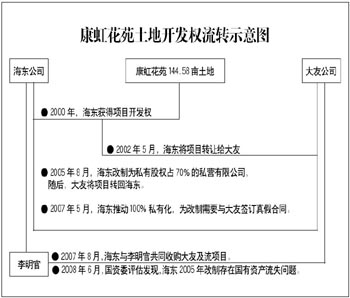 為什么要簽訂“真假合同”?對此,作為南匯建筑總公司總經(jīng)理、海東董事長、“真假合同”的簽字人,陳樹榮吞吞吐吐地回答:“我不清楚! 《經(jīng)濟參考報》記者在調(diào)查中發(fā)現(xiàn),康虹花苑土地的開發(fā)權(quán)最早歸海東所有,但這塊地在真真假假的合同中被倒來倒去,與之相伴的則是海東國有資產(chǎn)一步步“私有化”的玄機。 資料顯示,經(jīng)原南匯區(qū)有關部門批準,海東于2000年取得康虹花苑144.58畝土地房地產(chǎn)開發(fā)權(quán)。當時海東公司是國有控股企業(yè),由南匯建筑總公司及康橋鎮(zhèn)集體資產(chǎn)管理公司控股約70%,自然人占股約30%。 2002年5月,海東與大友簽訂《合同書》,以52萬元/畝的價格將康虹花苑土地轉(zhuǎn)給了大友,轉(zhuǎn)讓總價7518.16萬元。同年12月,雙方簽《補充協(xié)議》約定:為項目開發(fā)及土地手續(xù)順利落實,房地產(chǎn)權(quán)證等手續(xù)以雙方名義辦理,但海東“僅僅是名義”。 2004年5月,上海市房屋土地管理部門為海東和大友辦理了康虹花苑房地產(chǎn)權(quán)證。 2005年8月,海東推進企業(yè)改制,注冊資本由2000萬元增至5000萬元,私人股權(quán)由原來的30%擴大至近70%。海東由此變更為私營有限公司。 2005年11月,海東與大友股東簽訂《上海大友經(jīng)濟發(fā)展有限公司股權(quán)轉(zhuǎn)讓合同》及《補充協(xié)議》,大友將100%股權(quán)及其全部權(quán)益(即康虹花苑土地開發(fā)權(quán))以總價8000萬元的價格轉(zhuǎn)回海東。 然而,海東并未馬上履行合同,而是開始推進企業(yè)的“徹底改制”,并簽訂了一系列真真假假的合同—— 2007年5月10日,海東與大友兩股東簽訂《協(xié)議書》稱:解除雙方2005年11月所簽股權(quán)轉(zhuǎn)讓合同及補充協(xié)議;同一天,海東出具“承諾書”稱,這份《協(xié)議書》是為海東“改制需要”簽訂的,“并非雙方真實意愿”。5月26日,雙方簽訂《協(xié)議書》,聲明終止5月10日的《協(xié)議書》(即假合同),明確雙方仍按2005年11月所簽合同和補充協(xié)議執(zhí)行。5月31日,雙方再簽《產(chǎn)權(quán)轉(zhuǎn)讓協(xié)議》稱:大友轉(zhuǎn)讓其擁有的康虹花苑項目“50%產(chǎn)權(quán)轉(zhuǎn)讓款為8000萬元”;而同一天,海東再出“承諾書”稱,這份轉(zhuǎn)讓協(xié)議是假的,“完全是因我公司改制需要”簽訂的…… “改制需要”指的是什么?陳樹榮告訴《經(jīng)濟參考報》記者:“這是指2007年海東推進的徹底改制即改為純民營公司!笨蔀槭裁匆炗啞罢婕俸贤?對此,作為南匯建筑總公司總經(jīng)理、海東董事長、“真假合同”的簽字人,陳樹榮吞吞吐吐地回答:“我不清楚! 但陳樹榮承認,海東在推動企業(yè)徹底改制及收購大友時出現(xiàn)“資金緊張”,“于是拉李明官進來。” 2007年8月15日,海東和李明官與大友股東簽訂新的股權(quán)轉(zhuǎn)讓合同及補充協(xié)議,共同收購大友及康虹花苑土地開發(fā)權(quán)。合同還約定:2005年11月簽訂的大友股權(quán)以康虹花苑開發(fā)權(quán)轉(zhuǎn)回海東的合同“自行失效”。至此,上述“真假合同”似乎也變成“紙上談兵”。