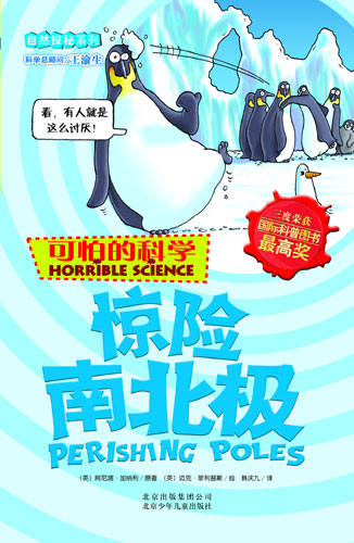 《可怕的科學(xué)·驚險(xiǎn)南北極》封面 | 叫板《十萬個(gè)為什么》的洋科普《可怕的科學(xué)》引進(jìn)版書籍在中國出版,與中式科普讀物問答式的灌輸結(jié)構(gòu)和教科書風(fēng)格反差很大,傳統(tǒng)科普讀物面臨強(qiáng)烈的挑戰(zhàn)。 在四、五年前,幾乎還是《十萬個(gè)為什么》一統(tǒng)天下的局面,好幾代人都是看著《十萬個(gè)為什么》長(zhǎng)大的。但《可怕的科學(xué)》在一年內(nèi)暢銷3百萬冊(cè),在多元科普知識(shí)資訊的時(shí)代,顯示了它的競(jìng)爭(zhēng)力。 在今年的上海書展上,各種各樣紛繁復(fù)雜的科普?qǐng)D書就是一個(gè)明證。僅在以中國紅為主基調(diào)的一個(gè)展區(qū),就集中陳列了14家出版單位的16000余種科普?qǐng)D書。 眾多科普?qǐng)D書的風(fēng)起云涌,出現(xiàn)了一股科普讀書熱。隨著人們的生活越來越講究科學(xué),少兒科普在整個(gè)少兒圖書市場(chǎng)所占份額越來越大,并使少兒科普市場(chǎng)逐漸成熟。不過,在那些科普?qǐng)D書中,數(shù)量是上來了,質(zhì)量卻沒有提高。在那些科普?qǐng)D書中,引進(jìn)版多,本地科普少;跟風(fēng)拼湊的多,原創(chuàng)佳作少。 《可怕的科學(xué)》曾三獲世界科普?qǐng)D書最高獎(jiǎng)――安萬特獎(jiǎng)。這次北京出版集團(tuán)公司首先推出的是“經(jīng)典科學(xué)”和“自然探秘”系列!敖(jīng)典科學(xué)”總共20種,涉及到物理學(xué)、化學(xué)、生物學(xué)等學(xué)科,采用了《能量怪物》、《觸電驚魂》、《時(shí)間揭秘》、《聲音的魔力》等可愛卻瘋狂的名字。 中國科普研究所高士其基金會(huì)秘書長(zhǎng)高志其先生說,家父高士其先生畢生都為繁榮我國的科普創(chuàng)作而不懈努力著。從這套系列讀物中,你能知道,植物也是有感覺的;數(shù)學(xué)不再是毫無感情的冷血;鯊魚和細(xì)菌,都可能讓這個(gè)世界既有的運(yùn)行模式發(fā)生改變;有一些看似淺顯的技能,學(xué)會(huì)了,可以受用一生。