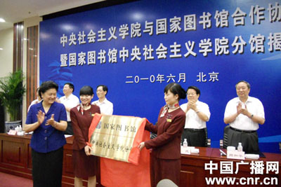 中央社會主義學(xué)院與國家圖書館10日在京簽訂合作協(xié)議共建分館,中共中央政治局委員、國務(wù)委員劉延?xùn)|出席儀式,為“國家圖書館中央社會主義學(xué)院分館”揭牌并發(fā)表重要講話。 中央社會主義學(xué)院、國家圖書館將在分館建設(shè)的基礎(chǔ)上開展多方面的合作。合作內(nèi)容豐富,形式多樣,包括:以中央社會主義學(xué)院圖書館為平臺,國家圖書館對中央社會主義學(xué)院建設(shè)中國民主黨派文獻(xiàn)資料中心提供支持;國家圖書館利用數(shù)字圖書館建設(shè)成果,以自助辦證、手持電子書閱讀器、觸摸屏資源展示、內(nèi)網(wǎng)接入等多種方式使中央社會主義學(xué)院教師學(xué)員更加便利地使用國家圖書館豐富的文獻(xiàn)信息資源等,享受到和在國圖一樣完全自助、方便、快捷的服務(wù)。 目前,國家圖書館已協(xié)助中央社會主義學(xué)院鋪設(shè)光纖專線,實現(xiàn)與國圖的網(wǎng)絡(luò)連通,一臺自助辦證機(jī)也已成功進(jìn)駐該學(xué)院圖書館。中央社院將充分利用其師資優(yōu)勢,與國家圖書館合作開展課題研究,產(chǎn)生有影響的科研成果。 正式開通的“國家圖書館立法決策服務(wù)平臺·中央社會主義學(xué)院平臺”是一個以提供綜合性立法決策參考信息為宗旨的數(shù)字化信息服務(wù)平臺,以中央社會主義學(xué)院用戶在圖書文獻(xiàn)信息方面的需求為基本服務(wù)內(nèi)容,以國家圖書館豐富的數(shù)字資源和在信息服務(wù)方面的經(jīng)驗特長為依托,有的放矢地為用戶創(chuàng)造符合個性化需求的信息服務(wù)環(huán)境。 該“平臺”主要包括“專題文獻(xiàn)”、“國圖推薦”、“實時報刊”、“電子書庫”、“文化長廊”等7個一級欄目,包含了電子圖書、電子報紙、電子期刊、專題咨詢、專題數(shù)據(jù)庫等多種內(nèi)容,并提供了文字、圖表、數(shù)據(jù)、圖片,動畫(flash),音視頻等豐富的表現(xiàn)形式,可隨時在線瀏覽、檢索。通過這個“平臺”,中央社會主義學(xué)院用戶可以全面、及時、準(zhǔn)確、有效地獲得國家圖書館的信息咨詢和決策參考服務(wù)。 國家圖書館中央社會主義學(xué)院分館的成立,既有助于國家圖書館進(jìn)一步在民主黨派建設(shè)和我黨統(tǒng)一戰(zhàn)線工作中發(fā)揮其信息服務(wù)優(yōu)勢,也有助于中央社會主義學(xué)院更好地履行統(tǒng)一戰(zhàn)線人才培養(yǎng)、理論研究和方針政策宣傳的職能。對于國家圖書館擴(kuò)大服務(wù)領(lǐng)域,對于中央社院加強(qiáng)統(tǒng)戰(zhàn)人才培養(yǎng)和統(tǒng)戰(zhàn)理論建設(shè),對于雙方更好地服務(wù)于學(xué)習(xí)型參政黨建設(shè)、學(xué)習(xí)型社會建設(shè)均有積極促進(jìn)作用。 中央社會主義學(xué)院是民主黨派和無黨派人士的聯(lián)合黨校,是統(tǒng)一戰(zhàn)線的人才培養(yǎng)基地、理論研究基地、方針政策宣傳基地;國家圖書館是綜合性研究圖書館,是國家總書庫和國家文獻(xiàn)信息提供基地與服務(wù)基地,承擔(dān)為國家立法決策機(jī)關(guān)和教育、科技與文化單位服務(wù)的職能。雙方的合作無論是對于民主黨派的建設(shè)還是對于中國共產(chǎn)黨統(tǒng)一戰(zhàn)線工作的鞏固都具有深遠(yuǎn)意義。 為國家重要的教學(xué)科研單位做實事,為我國的民主政治制度建設(shè)做貢獻(xiàn),也是國圖的重要責(zé)任。近年來,作為我國外文文獻(xiàn)的最大收藏地和世界中文文獻(xiàn)的最大藏家,國家圖書館積極轉(zhuǎn)化機(jī)制,強(qiáng)化服務(wù)意識,加大服務(wù)力度,提高服務(wù)水平,創(chuàng)建多種服務(wù)項目,在為中央和國家領(lǐng)導(dǎo)機(jī)關(guān),重點科研、教育、生產(chǎn)單位,社會公眾,以及圖書館界服務(wù)方面發(fā)揮了重要作用。