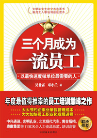 新書(shū)《三個(gè)月成為一流員工》讓我感受到又一次的強(qiáng)烈震撼,半年前我出版了同類(lèi)題材的書(shū)——《總裁的第一份工作》,仔細(xì)對(duì)照,從歸納能力、言簡(jiǎn)意賅能力、為讀者設(shè)身處地的移情能,可看出我寫(xiě)作之稚嫩及吳甘霖寫(xiě)作之老辣。以下摘自《三個(gè)月成為一流員工》: