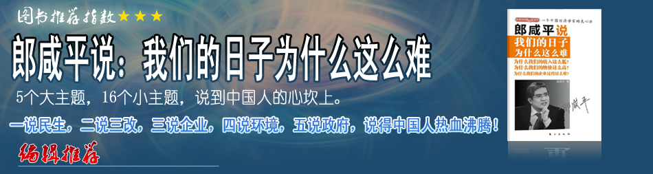 | 比較喜歡看郎教授的書的,通俗易懂,對社會經(jīng)濟有很強的洞察力,剖析問題也很深刻。只是看過后內(nèi)心總是非常沉重。 |