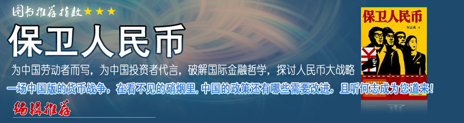 | 我對(duì)于中國(guó)經(jīng)濟(jì)一向樂觀。金融危機(jī)以來,我發(fā)表了一系列文章抨擊市場(chǎng)上財(cái)經(jīng)術(shù)士的所謂“危機(jī)論”。當(dāng)我第一眼看到何志成先生的新書《保衛(wèi)人民幣》時(shí),不禁被書名驚詫了,難道他也被某些悲觀論調(diào)嚇倒了?…[詳細(xì)] |