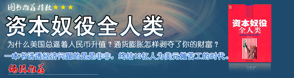 | 從美國獨立戰(zhàn)爭、南北內(nèi)戰(zhàn)到兩次世界大戰(zhàn),再到今天的次貸危機、歐債危機、人民幣升值風(fēng)波……通過一次次的高拋低吸,資本洗劫、掠奪并重新分配了全球財富,不斷地在人類的政治、經(jīng)濟生活中展現(xiàn)它巨大的威力。不管是股市、樓市、匯率還是物價,每一次的波動都跟資本脫不開關(guān)系,而現(xiàn)代社會的每一個人都不可能置身事外。歐美為什么總逼著人民幣升值?美國是如何洗劫全球財富的?中國金融體系是否會成為美國大資本的下一個獵物?怎樣才能在資本的“奴役”下保全自己的財富?如何才能在波云詭譎的波動中看清經(jīng)濟大局? |