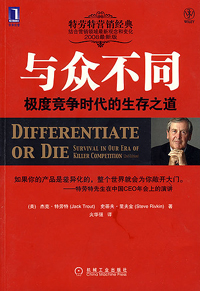 在《與眾不同》的前言,特勞特說:“本書就是要改變這一切。它概括了實施差異化的許多方法,同時讓你避開那些聽上去像差異化但實際不是差異化的誘惑!碧貏谔匾屛覀兿嘈,周圍充斥著的質量、授權、績效、以客戶為導向和各種形式提升領導力的建議,但它們終究不能做到“與眾不同”,反而容易走向誤區(qū)。在這一點上,特勞特一如既往,將定位理論又一次的具體和深化,而且還給出大量實現(xiàn)“差異化”的建議,這將為我們在極度競爭的商業(yè)環(huán)境下如何生存下來、并且活得更好提供了行之有效的引導。