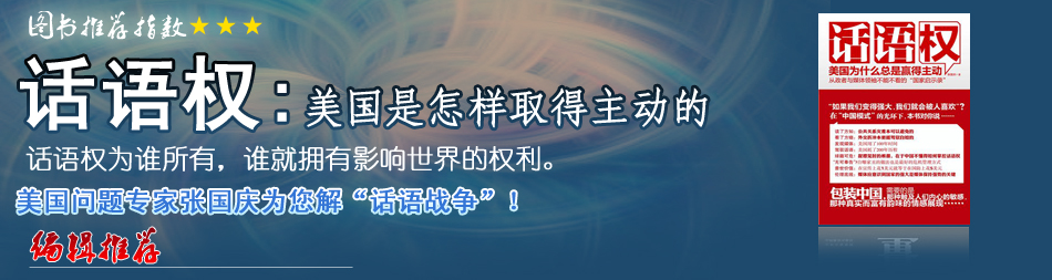 | 收到一本新書,書名很醒目——《話語權(quán)》,作者張國慶是中國社科院美國研究所的國際問題專家!对捳Z權(quán)》這本書主要內(nèi)容說的是美國社會如何利用“話語權(quán)”來影響中國、誤導中國、鉗制中國、戰(zhàn)勝中國。很寬的書腰上赫然寫著這樣的文字:“在宣傳上花1美元就等于在國防上花5美元”。因此,“話語權(quán)”等于是一場長期而復雜的“宣傳戰(zhàn)”。張國慶先生的這本書我還沒來得及看完,但是,他很清晰地提出了“話語權(quán)”這個非常重要的問題,他讓我們意識到,中國與美國之間的這場“話語權(quán)”較量,至少在目前看來,中國一直處于下風,近幾十年來,中國在這個問題上,始終不是美國的對手。有這樣一個意識,我覺得是一個巨大的進步…[詳細] |