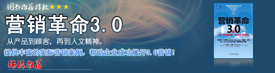 | 營銷3.0使我們從狹隘的關注“利潤,產(chǎn)品、消費者”到深切的關注“人與地球”,關注那些人類千百年來所信仰的精神和普世價值。營銷3.0描述了一個新的營銷世界,他帶領我們從“我”營銷向“我們”營銷轉(zhuǎn)變,從“消費者”營銷向“人”營銷轉(zhuǎn)變,它給我們提供了一個看待當今消費者的全新視角,它給我們指出了進入馬斯洛人類需求模型最頂級“自我實現(xiàn)”的路徑…[詳細] |
