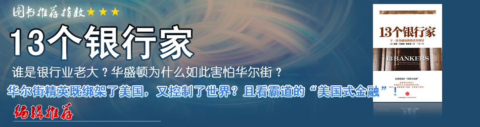 | 看了這本書,感覺題目有些危言聳聽,不過書的內(nèi)容還算中規(guī)中矩。書中提到的13個銀行家實際上是美國金融市場的一個縮影。 |