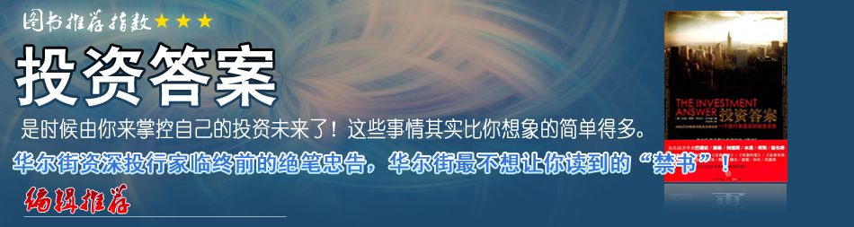 如果先不看作者介紹,單單閱讀《投資答案》這本書,可能更有助于讀者理性對(duì)待其中的分析和建議。書中圍繞“是獨(dú)立投資,還是尋求投資專業(yè)人士的幫助”,“如何在股票、債券和現(xiàn)金之間配置資金”,“投資組合應(yīng)該包括哪些具體資產(chǎn)類別,它們應(yīng)分別占多大比重”,“應(yīng)該積極主動(dòng)投資,力爭(zhēng)跑贏大市,還是以相對(duì)被動(dòng)的方式,獲得接近市場(chǎng)均值的回報(bào)”,“如何確定投資組合中部分資產(chǎn)調(diào)整的時(shí)機(jī)”五個(gè)問(wèn)題,基于對(duì)近幾十年來(lái)美股市場(chǎng)的數(shù)據(jù)分析,提出了大大有別于坊間流行說(shuō)法的觀點(diǎn)…[詳細(xì)]