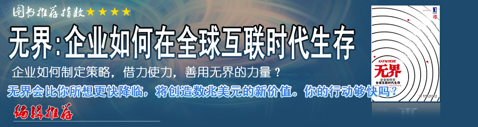 互聯(lián)性在成熟市場和新興市場之間快速建立了一個公平競爭的環(huán)境,那些了解如何利用互聯(lián)世界的人們將位于最佳的位置來影響它。對那些希望成為全球經(jīng)濟(jì)領(lǐng)導(dǎo)者的人來說,《無界》是必讀的一本書。 |