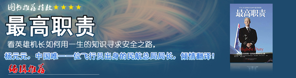 系統(tǒng)缺陷是事故發(fā)生的根源 不知是巧合還是主辦方的刻意,《最高職責(zé)》譯者楊元元的媒體見面會(huì)被安排在北京平安大街平安府賓館的平安閣,所談主題便是“安全”。在這里,楊元元與我們分享了他在翻譯《最高職責(zé)》一書過程中的所思、所想與所悟。 2009年1月15日,被譽(yù)為傳奇機(jī)長的薩倫伯格成功將發(fā)動(dòng)機(jī)停駛、失去動(dòng)力的空客320飛機(jī)迫降于哈得孫河上,機(jī)上155名乘客和機(jī)組人員全部幸免于難,創(chuàng)造了世界航空史奇跡!蹲罡呗氊(zé)》一書還原了這位英雄機(jī)長的這段故事。 “我的飛行經(jīng)歷跟這本書,跟這個(gè)機(jī)長很相像!迸c書中主人公同為50年代出生的楊元元曾經(jīng)也是一名優(yōu)秀的中國機(jī)長,這讓沒有經(jīng)過英語系統(tǒng)學(xué)習(xí)的楊元元在這本書的翻譯上傾注了大量心血。 “這個(gè)譯者很少見!敝袊馕木挚偩庉嫞藭鴮徯|S友義如此評(píng)價(jià)。《最高職責(zé)》全書有近160個(gè)注解,都是譯者自己寫上的“我干了一輩子翻譯,譯者可做這個(gè)事,也可不做這個(gè)事。原著有注解,我去給你翻譯出來。沒有,就沒必要費(fèi)力給你做這個(gè)事情。這種精益求精的精神可見一斑!…[詳細(xì)] |