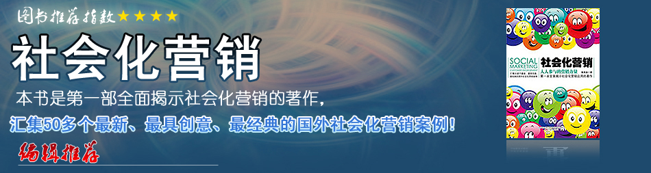 有研究表明,朋友推薦的消費信息比一般品牌廣告信息的有效率高十幾倍。社會化網(wǎng)站發(fā)展如火如荼,它為朋友之間推薦消費信息提供了一個便捷渠道。本書全面系統(tǒng)地分析了社會化營銷的起因、現(xiàn)狀與發(fā)展趨勢,更涵蓋了諸多充滿創(chuàng)意的精彩案例,這確實是一本不可多得的好書,推薦大家學習。 |
