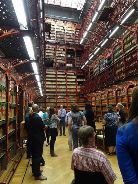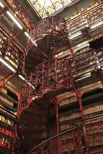 Peters)在19世紀(jì)末建造完成,因為當(dāng)時還有沒有電燈,為了減少館內(nèi)蠟燭和煤氣燈的使用以確保館藏文獻安全,大廈的天花板被修建成一個巨大的玻璃穹頂,好讓光線能透過中庭及各層鏤空雕刻的地板充分地照亮整座4層樓的圖書館。