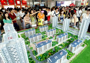 在近日開幕的“2007沈陽夏季房地產(chǎn)展示交易會”上,購房者在沙盤前表情各異,房價仍是他們的最關(guān)注點(diǎn)。新華社發(fā)(張文魁
