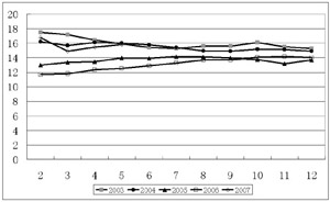宏觀調控政策在2006年10月以前具有一定的效果,此后,卻顯得乏力。我國行業(yè)的發(fā)展受到多種作用力合力的影響:國內外市場價格的作用力,行業(yè)自身的生產力,宏觀政策的作用力,行政手段的影響力等。價格是動態(tài)變化的,市場價格的作用力也相應地變化;短期內,行業(yè)的生產力受投資的影響較大,且有一個時間差,基本可以預計;宏觀政策的作用力具有一定滯后性和穩(wěn)定性;行政手段的影響力在市場的環(huán)境下,作用有限,持續(xù)性差,一般具有虎頭蛇尾的特征。如何保持宏觀政策的作用力及行政手段的影響力大于國內外市場價格的作用力和行業(yè)自身的生產力,使得國家宏觀調控政策取得效果是一個重要的智能工程問題,應給予動態(tài)跟蹤研究。特別要關注今年以來國內外市場價格變化對國家宏觀調控的反作用力,影響宏觀調控政策的實施效果。
