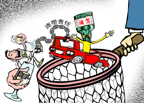為進一步加大酒后駕駛打擊力度,南京市從8月15日起組織開展為期兩個月的酒后駕駛違法行為集中整治行動。同時,相關(guān)部門將聯(lián)合出臺長效機制嚴(yán)禁酒后駕車,其中同桌勸駕駛?cè)孙嬀苹蛲嚸髦{駛?cè)司坪篑{車不及時主動勸阻制止的,將通報相關(guān)單位和主管部門予以內(nèi)部處理,情節(jié)嚴(yán)重的要媒體公開曝光并追究連帶責(zé)任。(據(jù)《長江商報》)張兮兮 繪