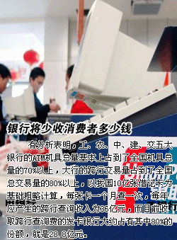 | 叫?缧胁樵冑M(fèi)對(duì)廣大銀行卡消費(fèi)者來(lái)說(shuō)似乎是好事,至少表面上如此。不過(guò),銀行也不是傻子,堤外損失堤內(nèi)補(bǔ),跨行查詢的成本可能還是要通過(guò)其他途徑轉(zhuǎn)嫁到消費(fèi)者的身上。而且這種帶有行政強(qiáng)制色彩的“一刀切”的叫停,確實(shí)也會(huì)產(chǎn)生負(fù)面的影響。試想:開(kāi)發(fā)新的金融產(chǎn)品卻不能帶來(lái)新的收益,誰(shuí)還愿意積極創(chuàng)新呢? |