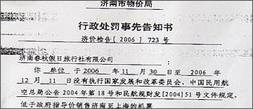 | 物價(jià)局能給外資航空公司開罰單嗎? |
