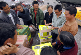 米22斤,面8斤,礦泉水2瓶。這是5月25日晨,四川省綿陽市平武縣南壩鎮(zhèn)冒水頭村婦女文小蕓排隊領(lǐng)到的救災(zāi)物資。“加上自家有的,我們不渴不餓!蔽男∈|說,“就是睡得有點擠,要是再能多領(lǐng)點彩條布搭帳篷就更好了! 遠遠望去,南壩鎮(zhèn)的河灘就像一個巨大的露天倉庫。成堆的礦泉水、方便面、糧油和被褥、帳篷等物資分類堆放一邊,顯得整齊有序。另一邊,是南壩鎮(zhèn)各個鄉(xiāng)村趕來領(lǐng)取救災(zāi)物資的受災(zāi)群眾,他們大部分背著背簍;個別通路的村,則開上了拖拉機和摩托車。 在現(xiàn)場負責(zé)分發(fā)物資的南壩鎮(zhèn)黨委副書記王青龍說,現(xiàn)在的救災(zāi)物資由平武縣抗震救災(zāi)指揮部統(tǒng)一調(diào)撥。由縣分發(fā)到鎮(zhèn),鎮(zhèn)分發(fā)到各鄉(xiāng)村,鄉(xiāng)村再分發(fā)到合作社和村民小組。 記者看到,物資發(fā)放必須由村委會主任或村黨支部書記去登記本村人口總數(shù),再由專人領(lǐng)到物資堆放點領(lǐng)取,由村負責(zé)人再進一步登記、分發(fā)到每一戶村民手中。 王青龍說,南壩鎮(zhèn)受災(zāi)群眾估算有2.6萬多人,從災(zāi)情發(fā)生至今,平均每天每人領(lǐng)到1斤大米,每戶1箱方便面、1盒罐頭,礦泉水、牛奶4戶1箱,大村發(fā)放帳篷30個,小村發(fā)放帳篷20個,此外,奶粉等物資專向3歲以下嬰幼兒發(fā)放。 正在登記發(fā)放物資的冒水頭村村委會主任文樹成告訴記者,他們村有200戶710多人,領(lǐng)到大米700斤,被褥、方便面、礦泉水和食鹽、蔬菜、牛奶若干。“溫飽不成問題。”文樹成說。 記者從平武縣委宣傳部了解到,截至5月24日,平武縣抗震救災(zāi)指揮部累計接收方便食品63490件,向平武、南壩、平同和響巖四個點發(fā)放方便食品55692件;帳篷4311頂,發(fā)放3527頂;接受捐贈糧食797.97噸,發(fā)放276.59噸。 坐在拖拉機上照看半車方便面的黨家溝村村民蔣燕說,“目前村里不缺藥,小孩的奶粉還缺。但我們在這么大的地震后還能有吃有住,真的感謝黨和政府,感謝幫助我們的所有人!
