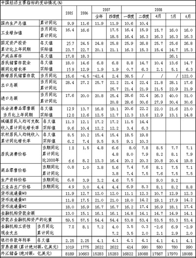今年上半年,我國經(jīng)濟增長速度有所回落,但依然是高位運行,各類物價漲幅明顯增大,居民消費價格漲幅呈先升后降的走勢,進口增長速度大幅提高,外部失衡出現(xiàn)良性變化,投資需求穩(wěn)定中有所下降,金融運行狀況在6月份明顯收縮。