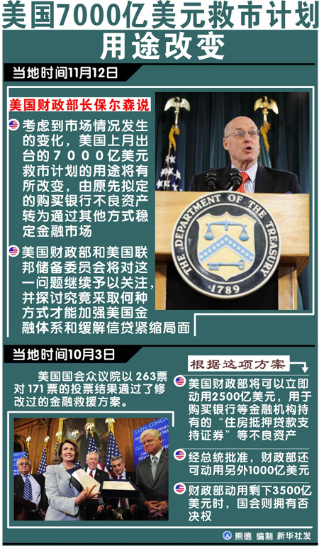 美國7000億美元救市計(jì)劃用途改變[圖表]