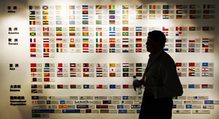應(yīng)對危機 拉動發(fā)展的“共同契機”——全世界國家和國際組織積極籌備參展上海世博會,截至2009年4月28日,共有234個國家和國際組織確認參加上海世博會,其中國家187個,國際組織47個。新華社記者:裴鑫 攝