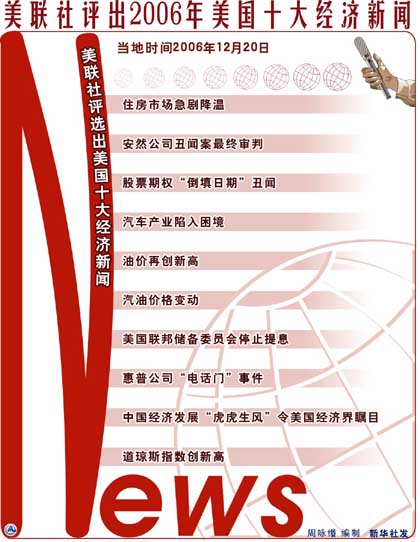 美聯(lián)社20日評選出今年美國十大經濟新聞。其中,美國房地產市場急劇降溫名列榜首,安然公司財務丑聞的最終裁決位居第二。