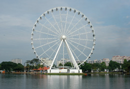 Malaysia)”的觀光輪高60米,有42個(gè)空調(diào)座艙,其中一個(gè)是貴賓包廂。馬來西亞于6日為這個(gè)摩天觀光輪舉行正式運(yùn)營揭幕儀式,從而拉開慶祝馬來西亞旅游年的序幕。 |