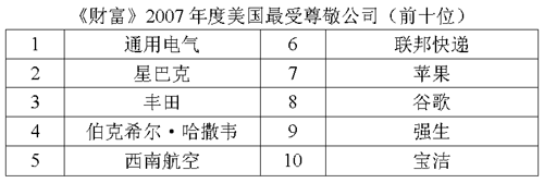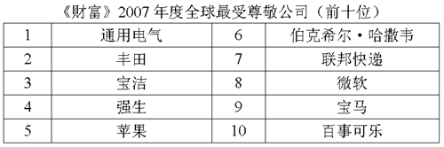 美國《財富》雜志網(wǎng)站日前公布了2007年度全美最受尊敬公司排名榜,通用電氣公司蟬聯(lián)冠軍,蘋果和谷歌公司進入前十強,微軟則由去年的第10位降至第12位。擁有創(chuàng)新理念及注重環(huán)保是今年勝出者的兩大特點。 今年是《財富》雜志推出“全美最受尊敬公司排名榜”的第25年。根據(jù)評選程序,調(diào)查人員先對“財富1000強”(年收入最高的1000家美國公司)和在美國開展業(yè)務的頂級外國公司按行業(yè)性質(zhì)進行分類,在每個行業(yè)中選出最受尊敬的10家公司,然后參考上一年的調(diào)查結(jié)果形成一個大名單。最后,由包括企業(yè)高管及證券分析師在內(nèi)的3322名受訪者進行投票,選出最受尊敬的10家公司。 通用電氣再度蟬聯(lián)冠軍寶座,這也是該公司第七次名列全美最受尊敬公司榜單之首,主要原因是該公司一直致力于環(huán)保事業(yè)。2005年5月,通用電氣在“綠色創(chuàng)想”計劃中提出,公司未來將以環(huán)保概念為軸心,研發(fā)最新科技產(chǎn)品,在協(xié)助客戶面對新時代環(huán)境挑戰(zhàn)的同時共同保護地球生態(tài)。2006年,由于在100多家工廠安裝了新照明設備,通用電氣將能源費用減少了約7000萬美元,另外還減排溫室氣體約15萬噸。 惟一一家進入排行榜前十位的非美國公司——日本豐田汽車公司由去年第九位升至第三。目前,豐田已成為美國最佳汽車廠商,自2002年以來,豐田旗下的凱美瑞一直是美國最暢銷車型。 得益于公司業(yè)績驕人和創(chuàng)新產(chǎn)品迭出,蘋果公司今年首次進入十強。在同行看來,蘋果徹底顛覆了電腦及音樂行業(yè)的傳統(tǒng)概念,如今蘋果已成為“美國的最佳零售商”。2004年,蘋果年銷售額達到10億美元,而去年僅一個季度的銷售額就達到了這一數(shù)字。 《財富》同時還推出了其他一些相關排名。例如,美國擁有入圍企業(yè)數(shù)量最多的州的前三名依然為加利福尼亞州(39家)、紐約州(37家)和得克薩斯州(34家)。 此外,《財富》還評出了2007年度全球最受尊敬的十大公司。與2006年相同,通用電氣、豐田和寶潔仍位居前三名。據(jù)悉,具體評介將在3月12日公布。