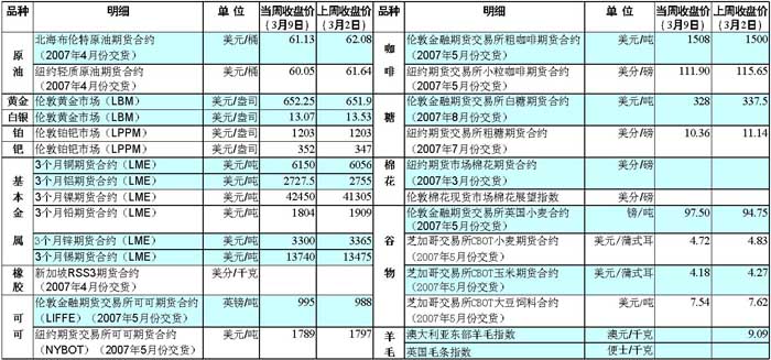 國(guó)際大宗商品期貨價(jià)格明細(xì)表[圖]