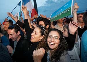 6日晚,在法國首都巴黎協(xié)和廣場,人民運動聯(lián)盟主席薩科齊的支持者慶祝大選獲勝。新華社記者 徐金泉
