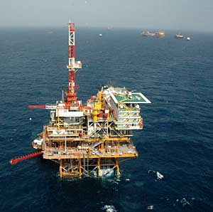 | 裝有中海油田服務(wù)有限公司(COSL)生產(chǎn)的模塊鉆機(jī)的1號(hào)平臺(tái)矗立在墨西哥灣的海面上。本報(bào)資料照片 | 受地緣政治局勢(shì)動(dòng)蕩和美國(guó)汽油供應(yīng)緊張等因素影響,國(guó)際油價(jià)連續(xù)第四天上漲并登上去年9月以來最高價(jià)位。 18日,紐約商品交易所7月份交貨的輕質(zhì)原油期貨價(jià)格每桶上漲1.09美元,收于69.09美元。倫敦國(guó)際石油交易所8月份交貨的北海布倫特原油期貨價(jià)格每桶上升71美分,收于72.18美元。