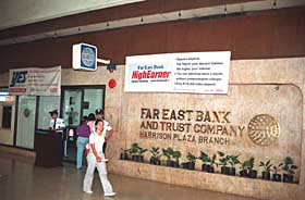 | 1998年菲律賓金融市場動蕩,對銀行業(yè)是一個巨大挑戰(zhàn)。為了穩(wěn)定人心,爭取各戶,各銀行都貼出了告示。本報資料照片 | “三明治”先生