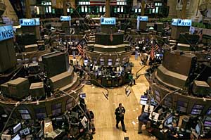 (本報(bào)資料照片) | 受諸多利空消息影響,紐約股市三大股指24日大跌,波及歐洲三大股市震蕩下跌。