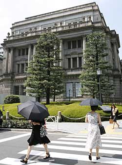 | 20日,行人經(jīng)過日本東京的日本銀行大樓。新華社/路透 | 本報東京電