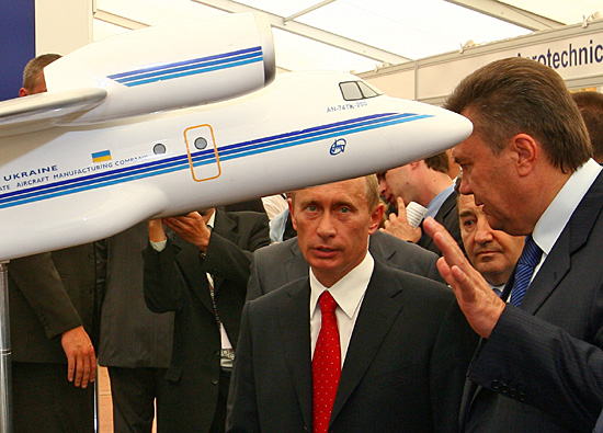 21日,在莫斯科市郊的茹科夫斯基舉行的俄羅斯第八屆國際航空航天展上,烏克蘭總理亞努科維奇(前右)陪同俄羅斯總統(tǒng)普京(前左)參觀烏克蘭生產(chǎn)的飛機(jī)的模型。當(dāng)日,俄羅斯第八屆國際航空航天展在此拉開帷幕。本屆航展共吸引來自39個(gè)國家的790家企業(yè)參展,參展商以實(shí)物樣品、模型、宣傳資料等形式展示了各型現(xiàn)代化飛機(jī)、航空武器、防空兵器和太空設(shè)備等。