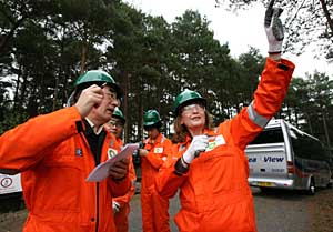 | 威奇法姆油田環(huán)境和通信主管Suzie Baverstock(右)向本報(bào)記者吳定保(左)介紹情況。本報(bào)記者 謝秀棟