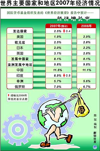 由于主要新興市場經(jīng)濟體繼續(xù)保持強勁增長,并很大程度上抵消了美國經(jīng)濟增長放慢的不利影響,2007年世界經(jīng)濟依然保持了快速增長。但金融市場動蕩和油價飆升給世界經(jīng)濟增長前景蒙上了陰影,使世界經(jīng)濟面臨的風(fēng)險顯著增大。