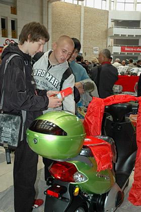 | 在俄羅斯西南部城市沃羅涅日舉行的重慶商品展上,俄羅斯觀眾被重慶生產(chǎn)的摩托車(chē)吸引。新華社記者 劉軼芳