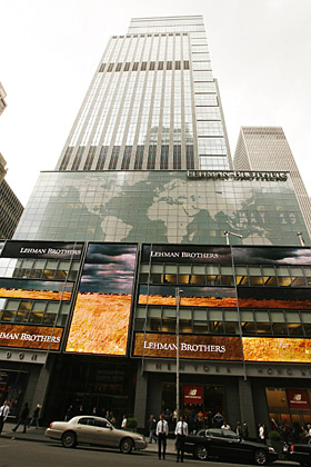 | 圖為美國紐約拍攝的雷曼兄弟公司總部的資料照片。新華社/路透 | 今年3月,華爾街投行摩根大通以每股10美元的低價收購了瀕臨破產(chǎn)的貝爾斯登后,市場一度被樂觀的情緒感染,認(rèn)為次貸危機(jī)最糟糕的部分已經(jīng)過去。然而,雷曼兄弟公司16日公布的巨額虧損消息令市場認(rèn)識到,次貸危機(jī)的“后續(xù)效應(yīng)”仍在陸續(xù)出現(xiàn),而由此引發(fā)的信貸緊縮、金融整合將使未來的美國經(jīng)濟(jì)面臨更多的不確定性。