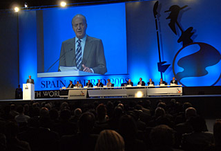 | 6月30日,在西班牙首都馬德里,西班牙國王胡安·卡洛斯(左一)在第19屆世界石油大會上發(fā)言。本屆世界石油大會于6月29日至7月3日舉行。新華社記者